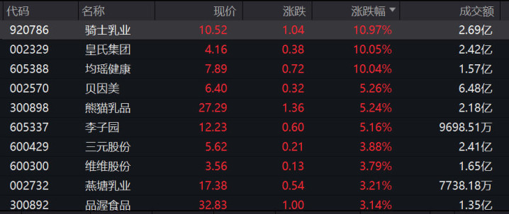 大消费板块强势 乳业、白酒方向活跃